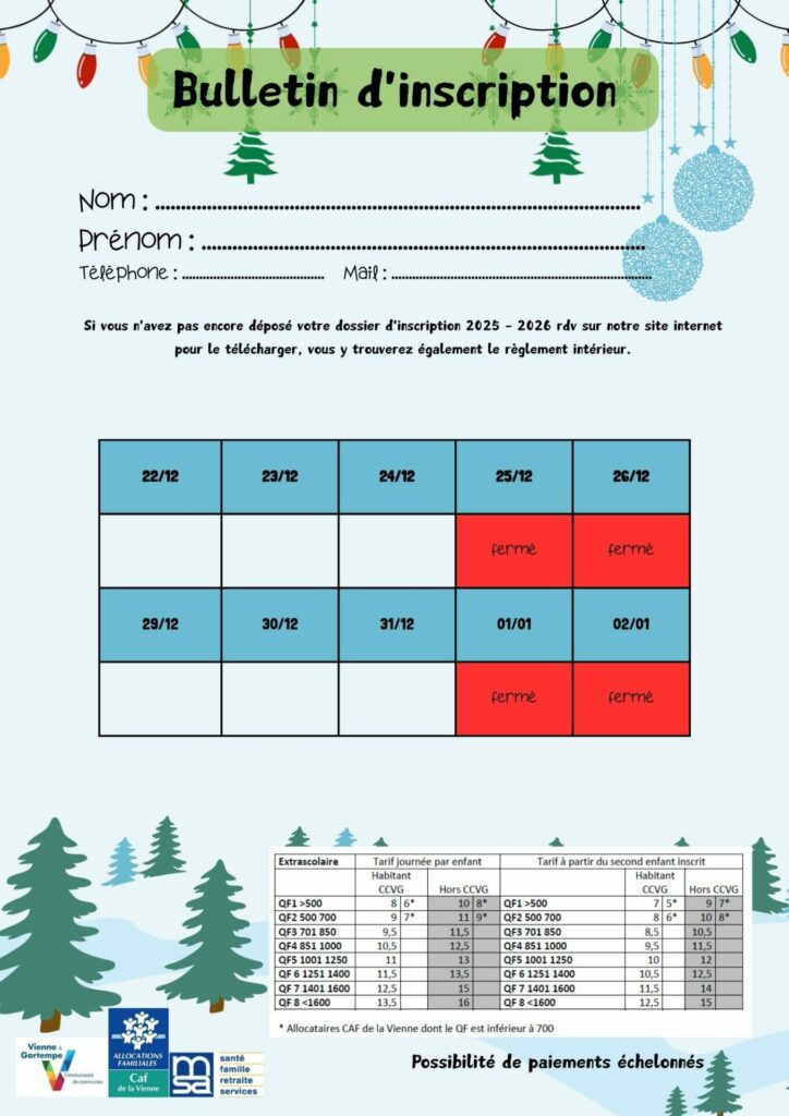 Inscriptions ouvertes vacances de décembre